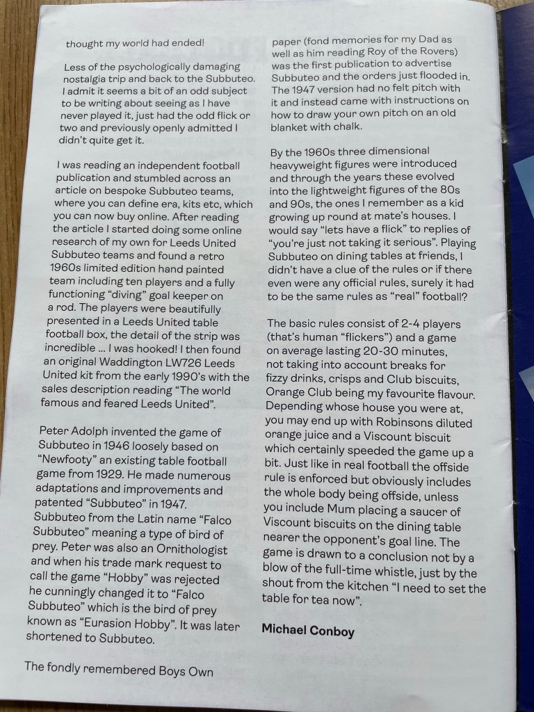 Featured in issue 18 of View from the Allotment end fanzine (March 2022)